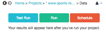 The 'Run' button will set the scraper in motion. Don't be concerned if it queues up for a while; even a relatively simple scrape can take a few minutes.