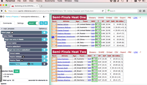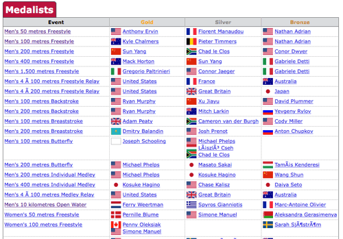 For me the splash page of interest was the Rio 2016 swimming home page on the Sports Reference site. It contained the root links to all the data I was interested in.
